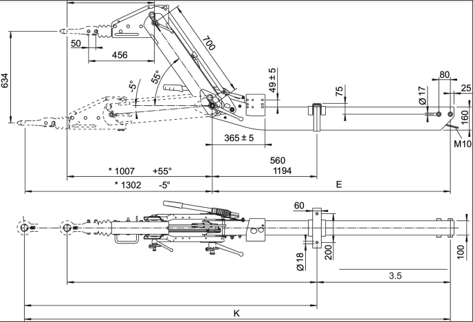 Gesamtlänge K bei -5° DIN-Zugöse: 3352mm