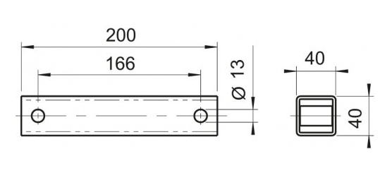 Gesamtlänge 200 mm, Lochmass 166 mm Bohrung 13 mm Ø