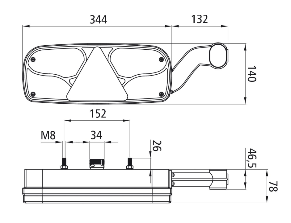 mit Rückfahrleuchte, Nebelschlussleuchte, Umrissleuchte und Kennzeichenleuchte