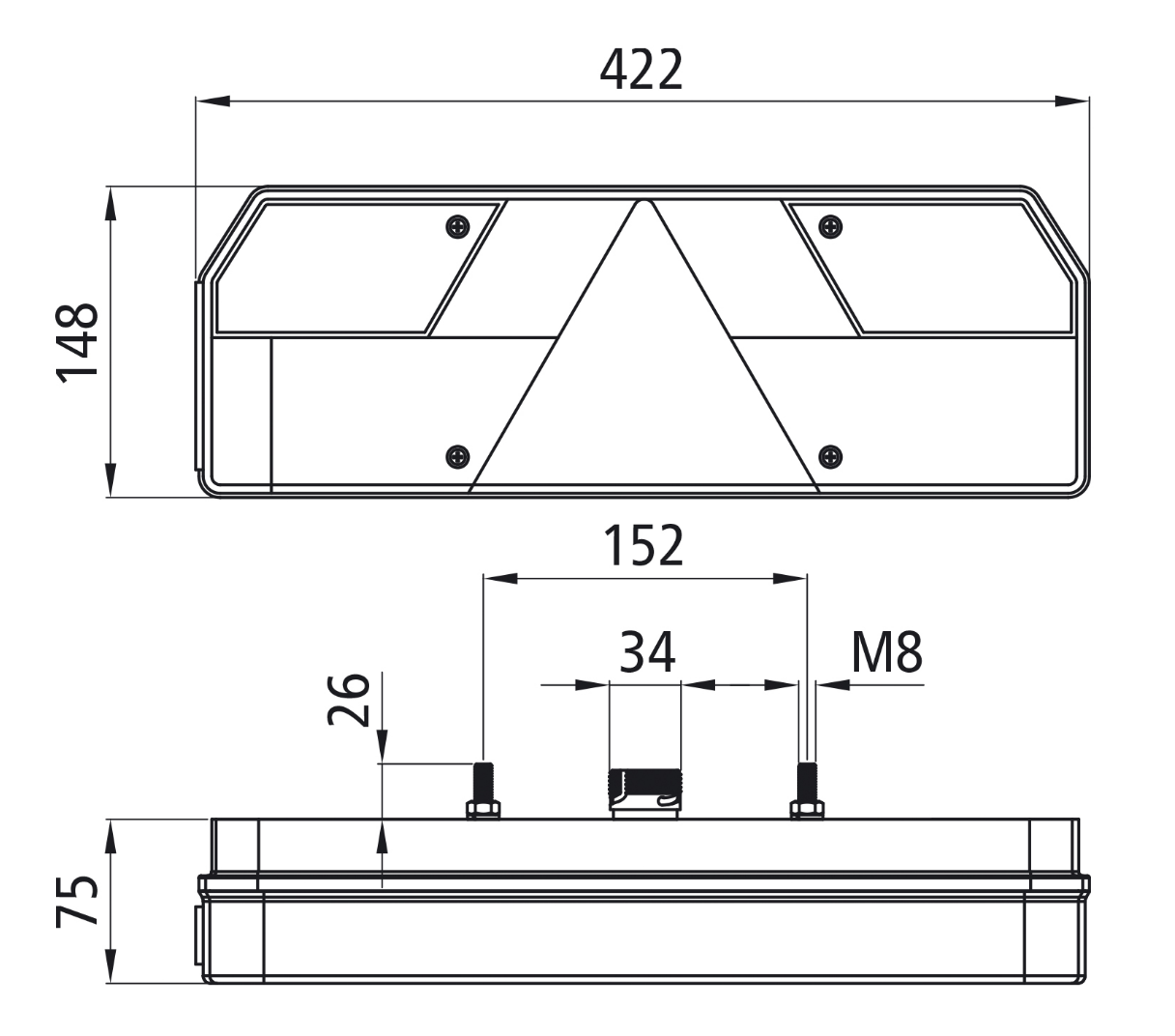 mit Rückfahrleuchte, Nebelschlussleuchte und Seitenmarkierleuchte ohne Kennzeichenleuchte
