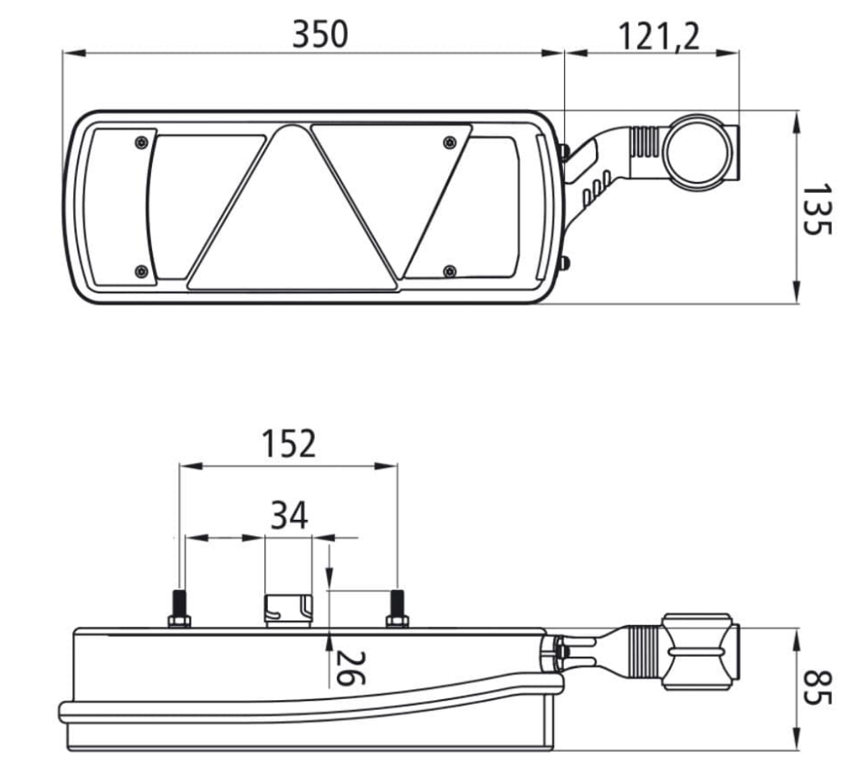 mit Rückfahrleuchte, Nebelschlussleuchte und Umrissleuchte ohne Kennzeichenleuchte
