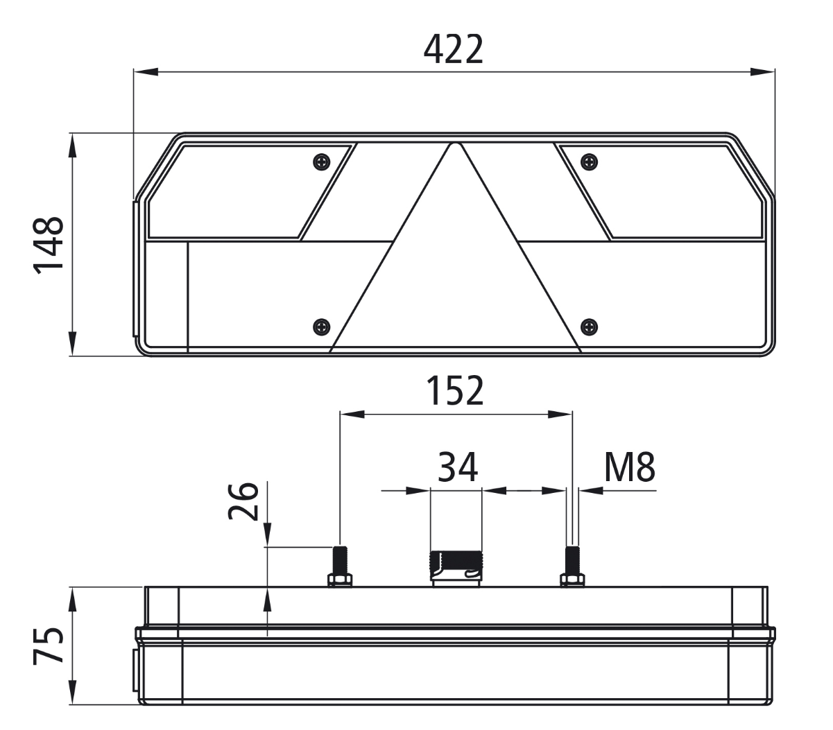 mit Rückfahrleuchte, Nebelschlussleuchte und Seitenmarkierleuchte ohne Kennzeichenleuchte