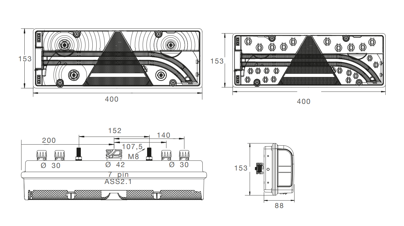 mit Rückfahrleuchte, Nebelschlussleuchte ohne Seitenmarkierleuchte ohne Kennzeichenleuchte