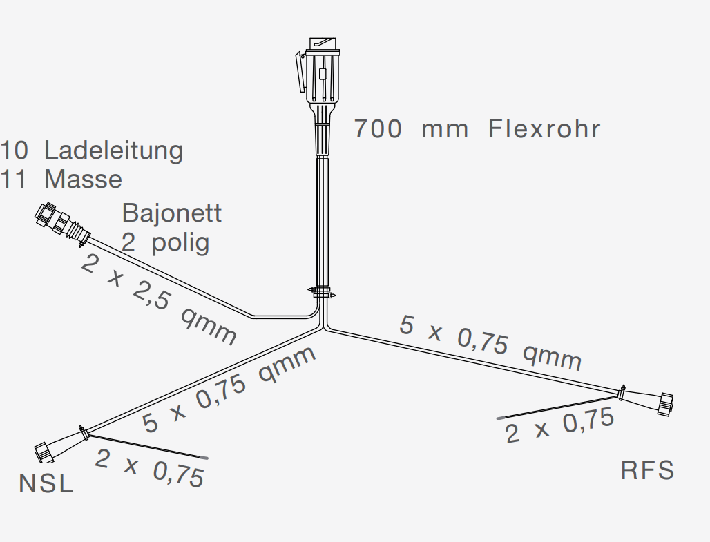 Aspöck Kabelsatz mit 13-pol Stecker und 5 Pol Bajonett-Anschluss und Abgangskabel