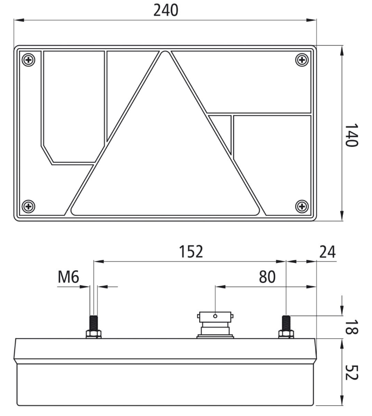 Mit Nebelschlussleuchte und seitliche Kennzeichenleuchtemit Bajonett-Anschluss, 5-polig Glühbirnen montiertLänge: 240mmBreite: 140mmHöhe: 52mmLochabstand: 152 mm E-Nummer: E9-4124, E2-09489, E9-5099