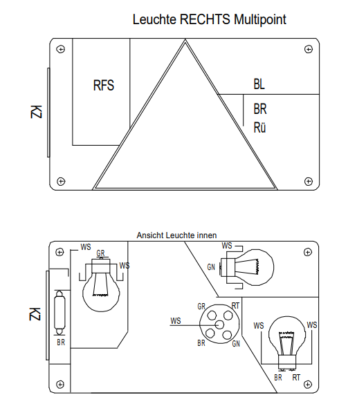 mit Rückfahrleuchte und seitliche Kennzeichenleuchte