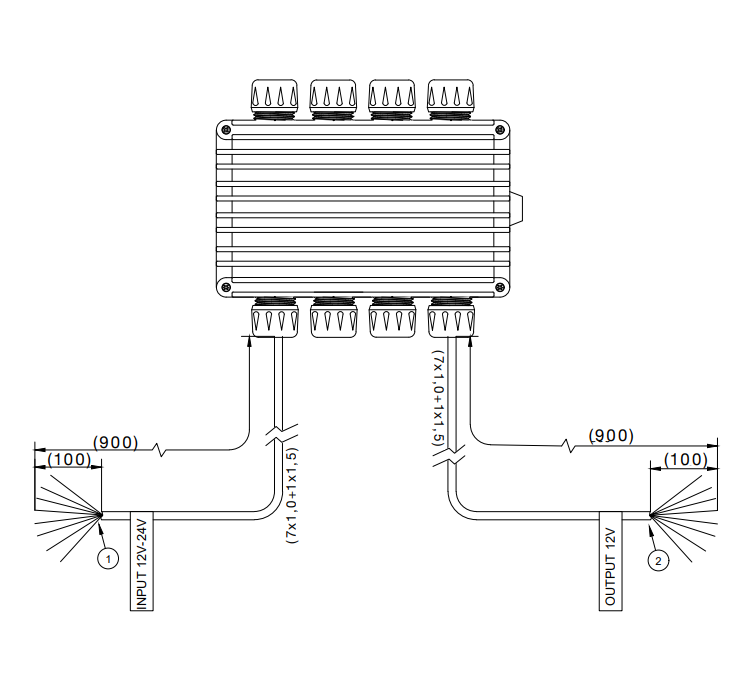 IP65, 8x150W, gesamt max. 210W