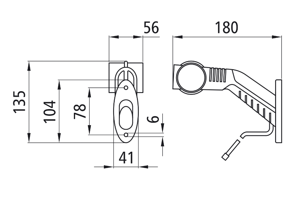 Umrissleuchte LED, Befestigungsarm schräg abgewinkelt