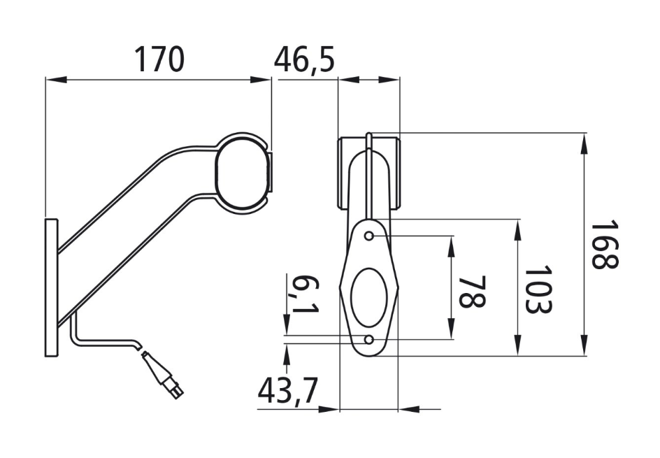 Umrissleuchte Glühbirne, Befestigungsarm schräg gewinkelt