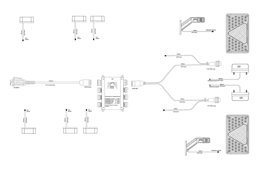 - eine einfache und rasche Nachrüstung in eine bestehende Aspöck Lichtanlage ist durch die passenden ASS3 Stecker möglich