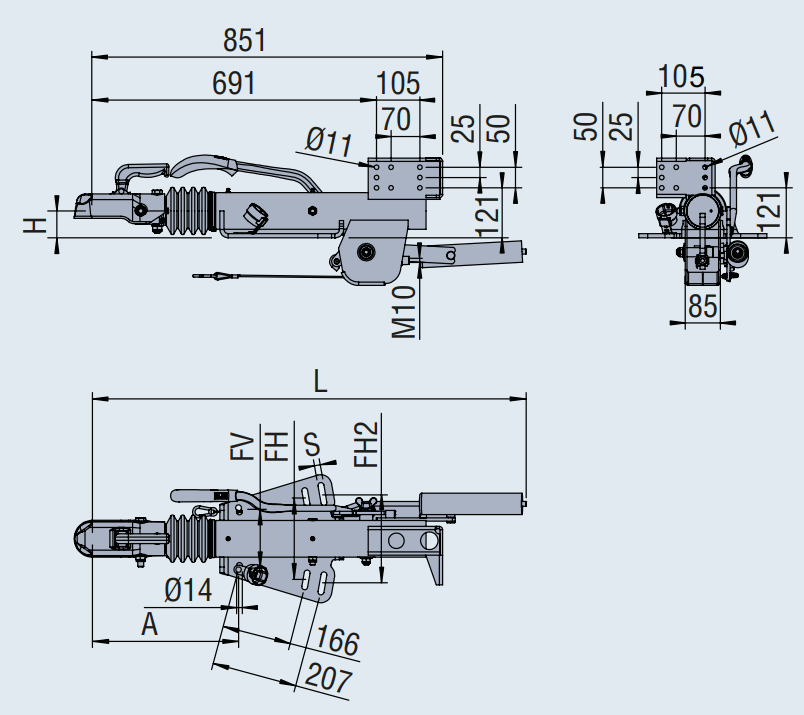 BPW V Auflaufeinrichtung mit Totpunkt-Handbremshebel, mit Stützradkonsole