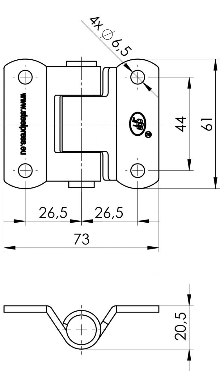Gesamtlänge: 73 mm (36.5/36.5 mm)