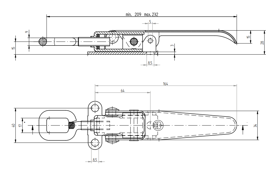 Gesamtlänge: min. 209 mm, max. 232 mm