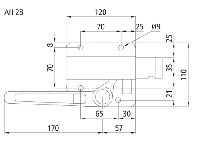 • Griff besitzt eine Bauhöhe von 28 mm, beim Gehäuse 20,5 mm