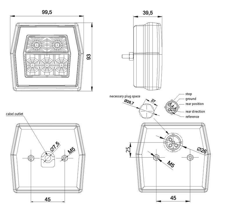 Schlussleuchte LED links/rechts, 12V/24V Blink- Brems- Schlusslicht