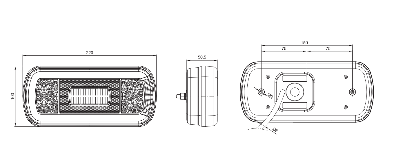 Schlussleuchte LED rechts, 12V/24V Rückfahr- und Kennzeichenlicht