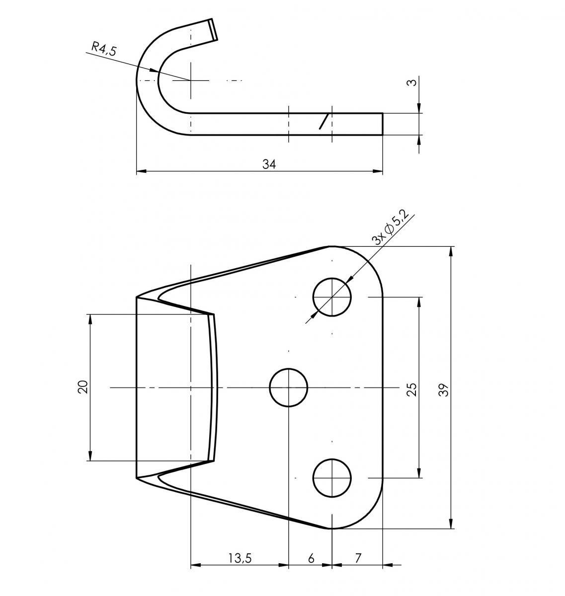 Gegenhalter für Excenterverschluss zum Anschrauben mit 3 Bohrungen