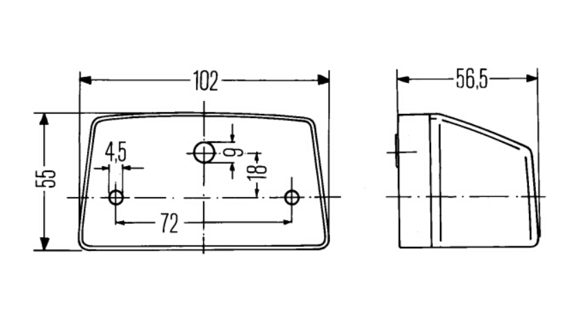 Kennzeichenleuchte graues Gehäuse und schwarze Grundplatte