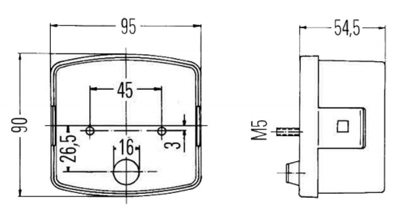 Hella Schlussleuchte BBS 12V, links 95x90x54.5, mit Gummitülle VerglNr: 2SD002776-231