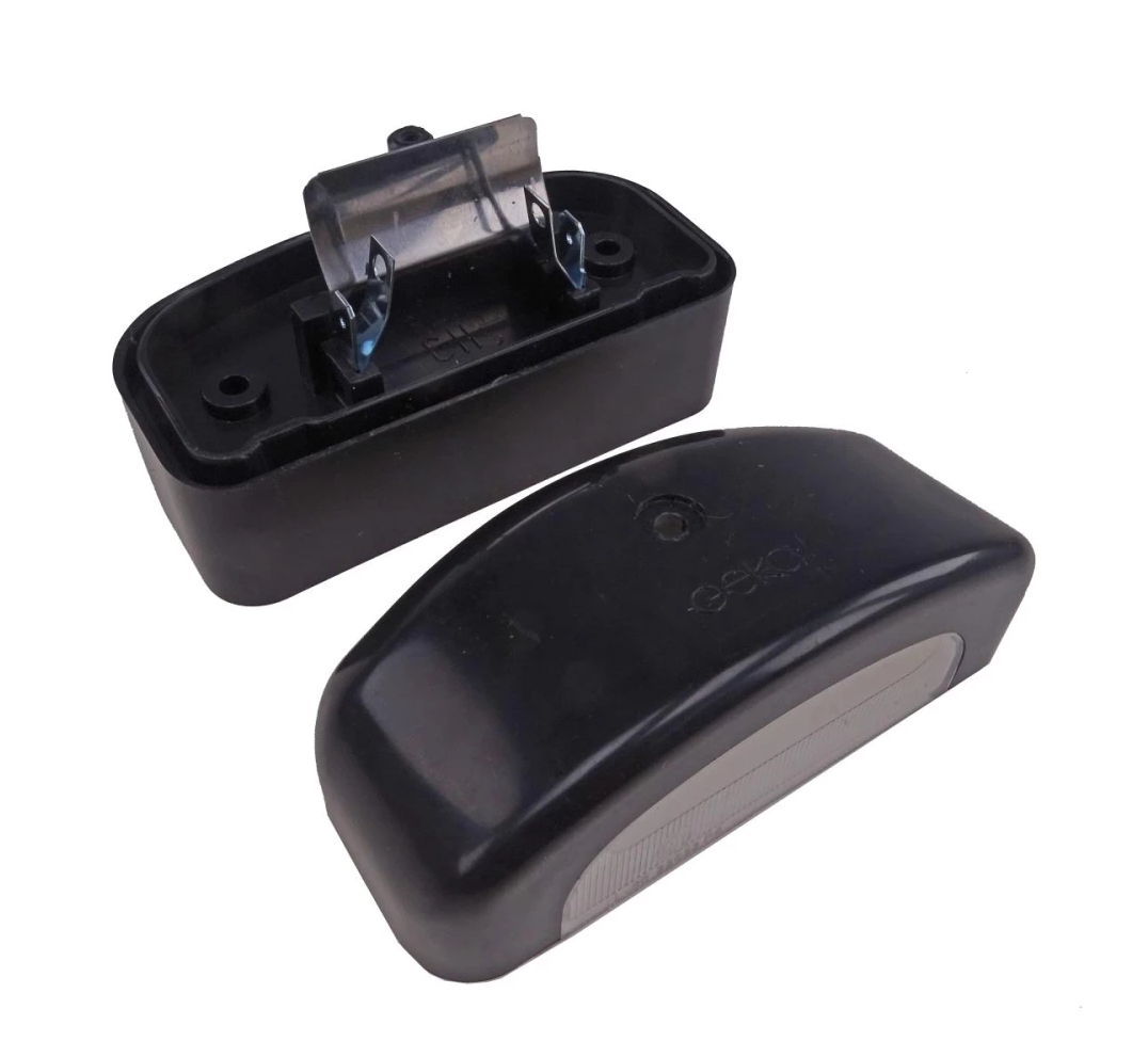 Kennzeichenleuchte schwarz mit hohem SockelLänge: 105mmBreite: 55mmHöhe: 63mmLochabstand: 72mmE-Nummer: E1-12820Ersatzhaube: 9BG101230001