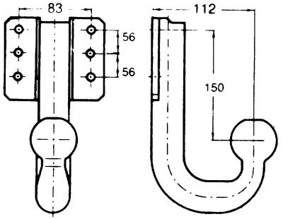 Höhe mitte Kugel zu obere Bohrung -150mm