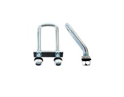 | Zurrbügel für Bodenrahmenprofil, L83 x B50 mm, Ø 12 mm, oben 150° abgewinkelt kpl. mit Gegenplatte + Muttern, 1000 daN |