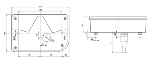 Lichtscheibe rechts Blink-Brems-Schluss-Rückfahrlichtmit/ohne KennzeichenfensterLänge: 200mmBreite: 130mmE-Nummer: E2-06061
