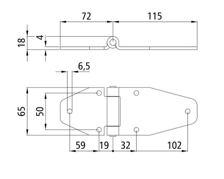 Seitentürscharnier, mit langem Anschraublappen Nirosta
