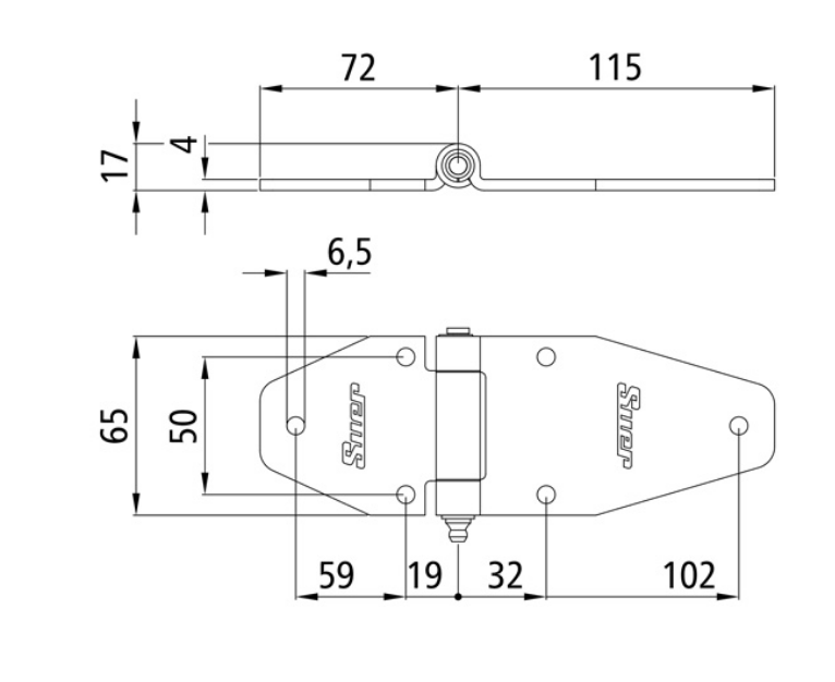 Seitentürscharnier, mit langem Anschraublappen