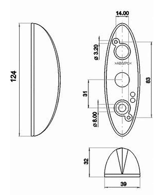 Umrissleuchte rot/weiss 12-24V 5W, Boden weiss mit Abdeckung verspiegelt