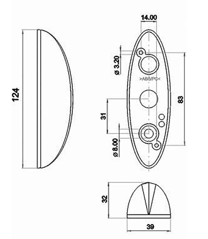 Umrissleuchte rot/weiss 12-24V 5W, Boden weiss mit Abdeckung grau