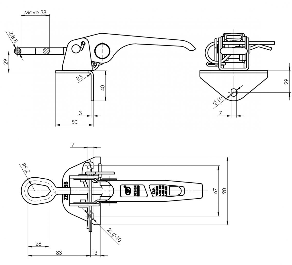 Excenterverschluss mit Öse mit Federstecker als Sicherung