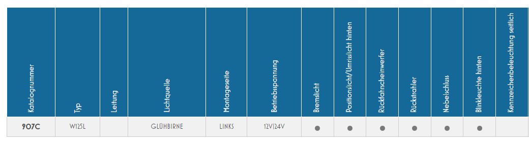 Schlussleuchte rechts Blink- Brems- Schlusslicht mit Rückfahr- und Nebellicht