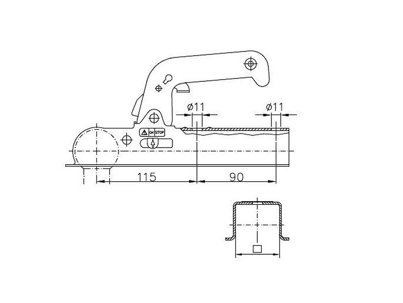ALBE Kugelkupplung EM 80 VF 800/75 kg, Zugrohr vk. 60 mm Bohrung: vertikal Ø 10.5
