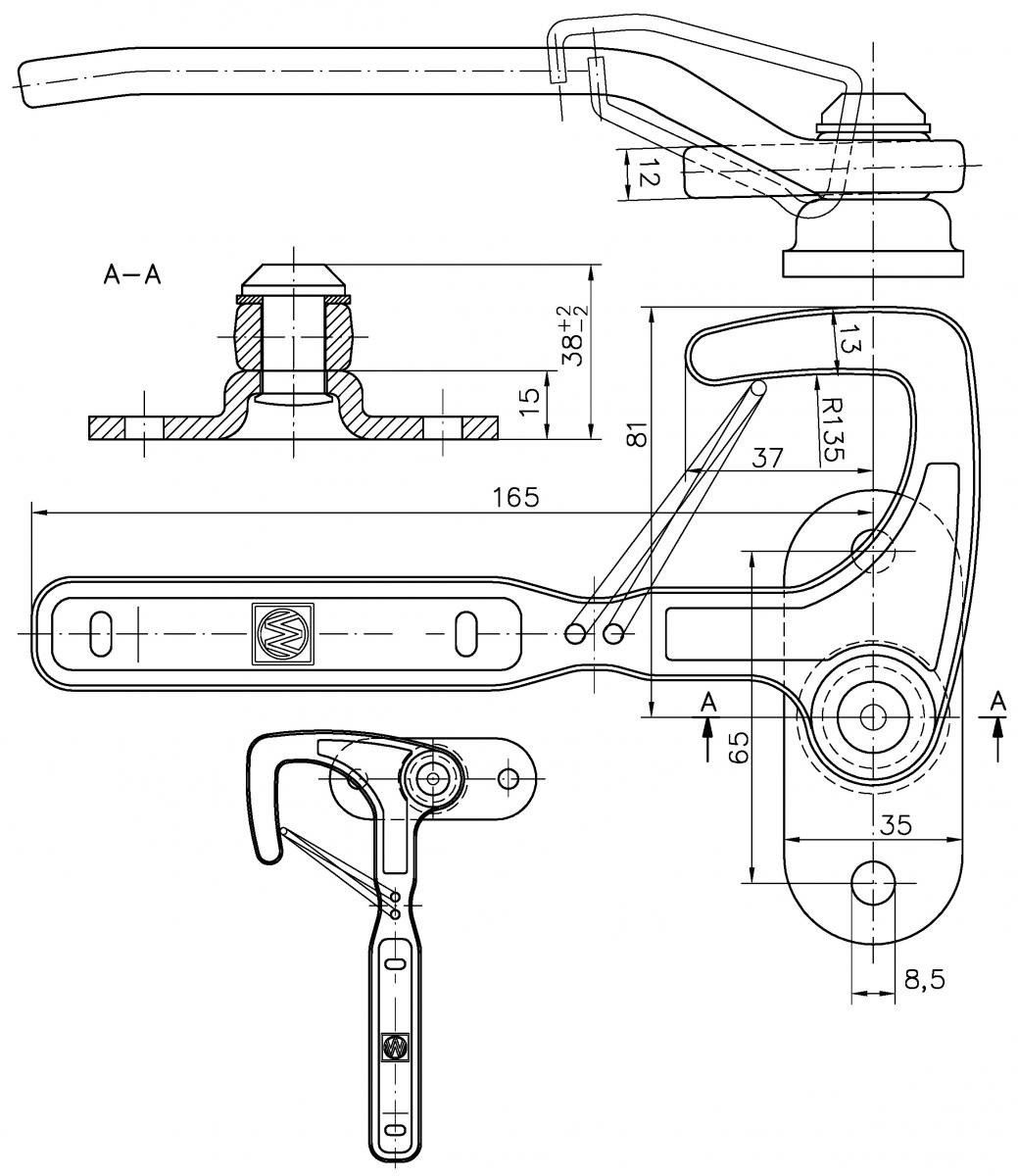 Einfallöse vz. Gr. 1 p.f. Kasten-/Winkelhebelverschluss Durchmesser der Öse 16.5 mm VerglNr: 008000110